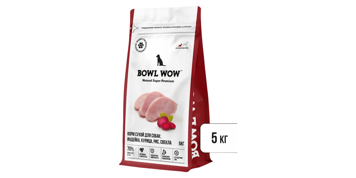 Bowl Wow — относительно новый игрок на рынке, который уже завоевал популярность среди владельцев собак. Здесь мы видим (а собаки чувствуют в гранулах) до 70% свежего мяса, а также сладкие ягоды и полезные овощи. Этот бренд делает ставку на беззерновые рецептуры. Поэтому, если ваш друг плохо переваривает крупы, это то, что ему нужно. Единственный минус — пока не во всех магазинах можно его найти.